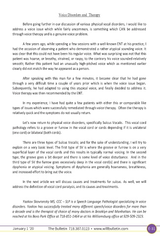Let’s now return to physical voice disorders, specifically Sulcus Vocalis. This vocal cord