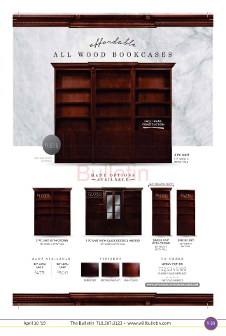 2 PC UNIT WITH CROWN 3 PC UNIT WITH GLASS DOORS & MIRROR SINGLE UNIT SINGLE UNIT