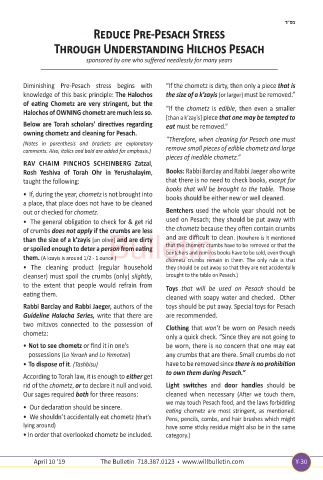comments. Also, italics and bold are added for emphasis.) remove small pieces of edible chometz and large