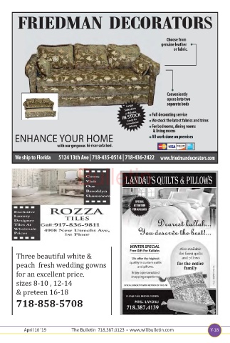 Bulletin WINTER SPECIAL Free Gift For Kallahs Three beautiful white & peach fresh wedding gowns for an excellent price. sizes 8-10 , 12-14 & preteen 16-18 718-858-5708 April 10 '19 # 0'' /$) ǚǔǛǻǖǛǚǻǓǔǕǖ ȗ 222ǻ2$'' 0'' /$)ǻ *( Y-18