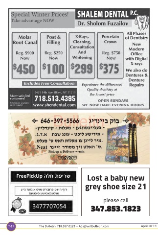 SHALEM DENTAL P.C. Bulletin Lost a baby new grey shoe size 21 please call 347.853.1823 Y-17 # 0'' /$) ǚǔǛǻǖǛǚǻǓǔǕǖ ȗ .ȭ2$'' 0'' /$)ǻ *( April 10 '19