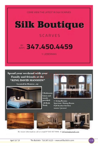 For more information call or email P: 845 837 8046 E 347weiss@gmail.com