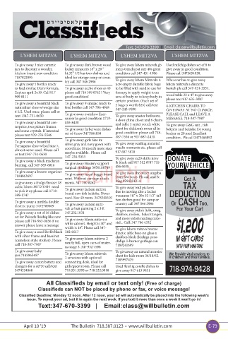 try call 347 546 2986 To give away lshem Mitzvah: 4 Who ever has to give away