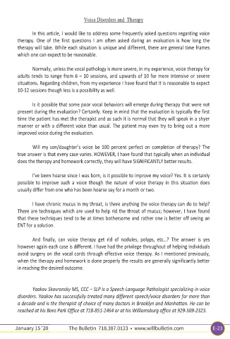 possible to improve such a voice though the nature of voice therapy in this situation does