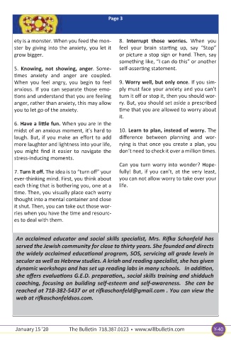Page 3 - Interrupt those worries. Knowing, not showing, anger - Worry well, but only once - - - Learn to plan, instead of worry. - - - -