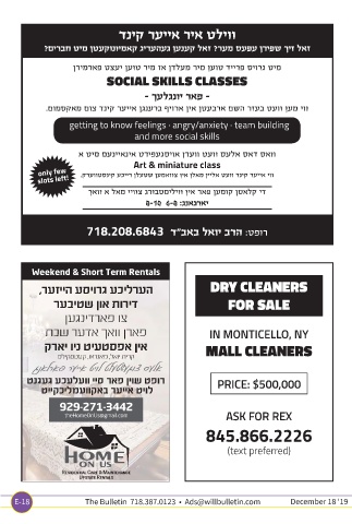 SOCIAL SKILLS CLASSES getting to know feelings · angry/anxiety · team building and more social skills Art & miniature class 718.208.6843 DRY CLEANERS FOR SALE IN MONTICELLO, NY MALL CLEANERS PRICE: $500,000 ASK FOR REX 845.866.2226 (text preferred)