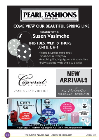 COME VIEW OUR BEAUTIFUL SPRING LINE COMING TO THE Susen Vasimche THIS TUES. WED. & THURS. JUNE 2, 3, & 4 »Teens & Ladies robe tops Shabbos & Everyday »Matching Pj’s, Nightgowns & stretchies »Fully stocked with shells & dickies