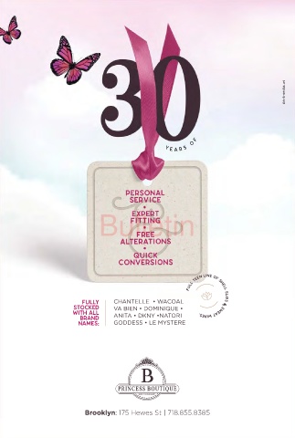 dartmedia.us F Y E A R S O Bulletin Fully CHANTELLE • WACOAL Full teen line of Shell Slips & Sweat Wipes. stocked VA BIEN • DOMINIQUE • with all ANITA • DKNY •NATORI brand names: GODDESS • LE MYSTERE Brooklyn: 175 Hewes St | 718.855.8385