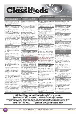 will be greatly appreciated. 347- Lost a maroon “pompom” in FOUND