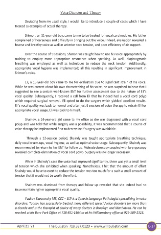vocal quality. Subsequently, I received a call from Eli that he indeed had a vocal cord polyp