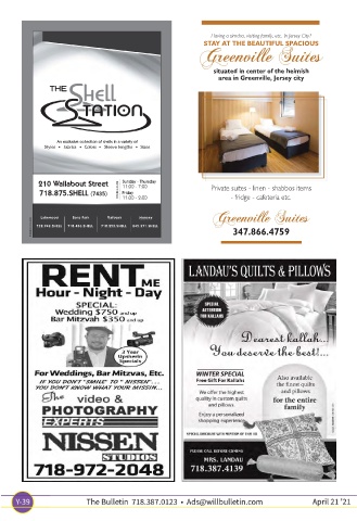 210 Wallabout Street Sunday - Thursday Private suites - linen - shabbos items