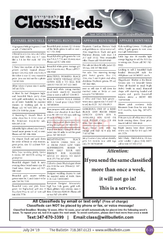 gowns sizes 16, 7, and 2 size 5-6 for 4-10. Call 7189351893 it will not go in!