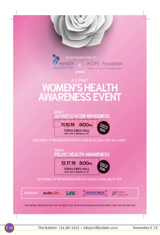 present WOMEN’S HEALTH AWARENESS EVENT Event 1 BREAST CANCER AWARENESS Bulletin Event 2 PELVIC HEALTH AWARENESS