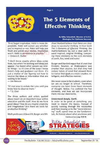 Page 1 The 5 Elements of Effective Thinking By Rifka Schonfeld, Director of S.O.S. (Strategies For Optimum Success) - - - Bulletin - - Understand deeply. Earth. - - -