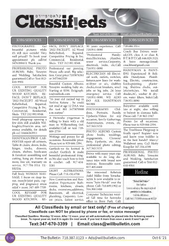 E-36 The Bulletin 718.387.0123 • Ads@willbulletin.com Oct 6 '21