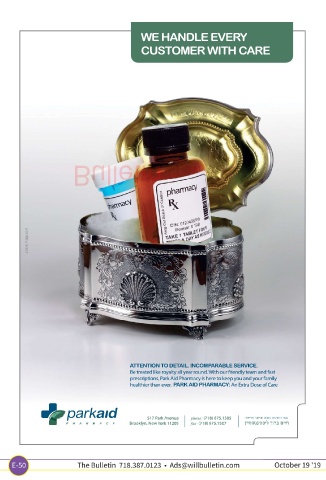 WE HANDLE EVERY CUSTOMER WITH CARE Bulletin ATTENTION TO DETAIL. INCOMPARABLE SERVICE. PARK AID PHARMACY: