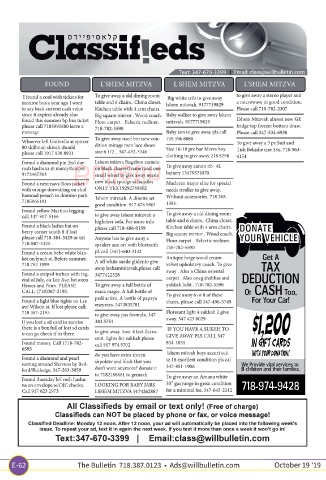 Bulletin DONATE YOUR VEHICLE Get A TAX DEDUCTION Or CASH Too, For Your Car! We Provide vital services to ill children and their families. 718-974-9428 NOT