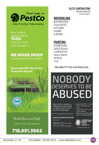 ELITE CONTRACTING MOSHE MAYER 718-675-6617 REMODELING BATHROOMS CONCRETE KITCHEN SIDING & MORE... PAINTING COMPOUND SHEETROCK CARPENTRY WALK WAYS PATIOS TILE RELIABILITY YOU CAN BUILD ON... Mechel Spira and Staff E-31