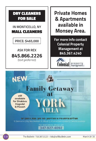 DRY CLEANERS Private Homes FOR SALE & Apartments available in IN MONTICELLO, NY MALL CLEANERS Monsey Area. For more info contact PRICE: $465,000 Colonial Property Management at ASK FOR REX 845.367.4240 845.866.2226 (text preferred)
