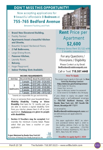 application. Preferences are given to people Bedfordave@residenewyork.com and