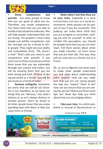 Page 2 Show competence and Make others feel that they are warmth. on your team. environment, but even in a social en- - - this strength can be a threat to oth- friend. - Bulletin Remove ambiguity. - - - value them as friends.