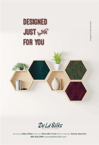 T H E L A T E S T I N S C A R V E S Monsey: Libby Miller Monroe: Shaindle Fried Williamsburgh: Bashy Nojovits 845.510.1959 scarves@delasilks.com