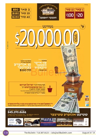 Bulletin VIZNITZ INSTITUTIONS INC. - OF KIRYAS VIZNITZ P.O. BOX 406,- KIAMESHA LAKE, NY 12751