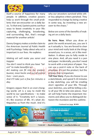 Page 2 - - - - - Be here. Now the - happier You don’t need to think you have “tal- Bulletin Tell Your Story - - - - -