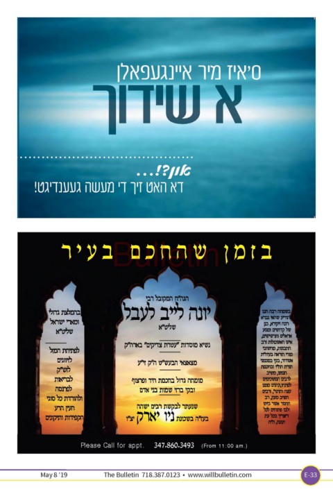 ~~ ~ "~ ~ ~ Bulletin Please Call for appt. +,/&0.(&+,1+ (From 11:00 am.) May 8 '19 # 0'' /$) ǚǔǛǻǖǛǚǻǓǔǕǖ ȗ 222ǻ2$'' 0'' /$)ǻ *( E-33