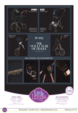 PRIAM RICH DESIGN BORO PARK WILLIAMSBURG TH 1263 44 STREET 739 BEDFORD AVE 718.871.BABY 718.797.BABY Hours: Sun: 11-6 Hours: Sun-Thurs: 11-6:45 Mon-Thurs: 11-6:45 | Fri: 10:30- Fri: 10:30-