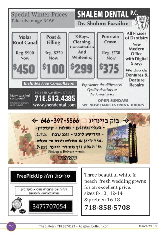 SHALEM DENTAL P.C. Bulletin Three beautiful white & peach fresh wedding gowns for an excellent price. sizes 8-10 , 12-14 & preteen 16-18 718-858-5708 Y-5 # 0'' /$) ǚǔǛǻǖǛǚǻǓǔǕǖ ȗ .ȭ2$'' 0'' /$)ǻ *( March 29 '19