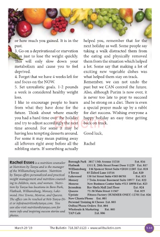 Rachel Esses is a nutrition counselor Borough Park 3817 13th Avenue 11218 Ext. 816