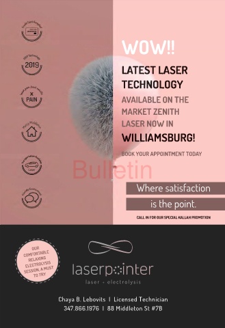 WOW!! h I AVAILABLE ON THE MARKET ZENITH LASER NOW IN BOOK YOUR APPOINTMENT TODAY Bulletin Where satisfaction is the point. 845-254-5080 Chaya B. Lebovits I Licensed Technician 347.866.1976 I 88 Middleton St #7B