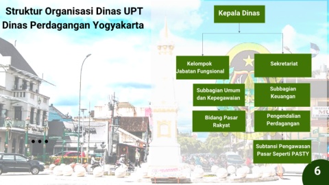 Struktur Organisasi Dinas UPT Kepala Dinas Dinas Perdagangan Yogyakarta Kelompok Sekretariat Jabatan Fungsional Subbagian Umum Subbagian dan Kepegawaian Keuangan Bidang Pasar Pengendalian Rakyat Perdagangan Subtansi Pengawasan Pasar Seperti PASTY 6