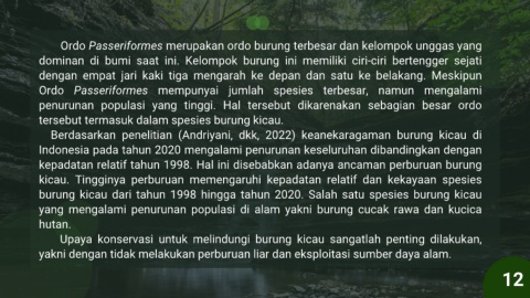 Berdasarkan penelitian (Andriyani, dkk, 2022) keanekaragaman burung kicau di