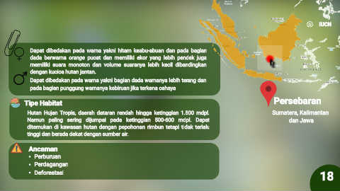 Hutan Hujan Tropis, daerah dataran rendah hingga ketinggian 1.500 mdpl. Sumatera, Kalimantan
