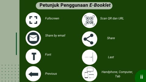 Petunjuk Penggunaan E-Booklet Fullscreen Scan QR dan URL Share by email Share Font Last Handphone, Computer, Previous Tab ii
