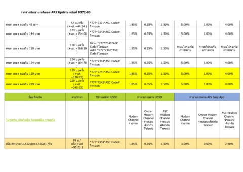 เนต 89 บาท UL512kbps (2.5GB) 7วัน คร้ง(+vat *777*7354*ASC Code# 1.85% 0.35% 1.50% 3.00% 0.60% 2.40%