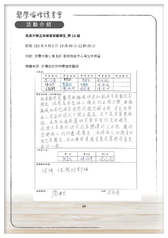 長庚大學五年級實習醫學生_第 14 組 時間: 113 年 4 月 3 日 10 時 00 分-12 時 00 分 地點: 兒童大樓 L 棟 B2F 臨床技能中心考生休息室 指導老師: 外傷急症外科廖健宏醫師 14