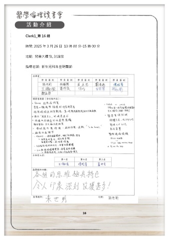 Clerk1_第 16 組 時間: 2025 年 3 月 26 日 13 時 00 分-15 時 00 分 地點: 兒童大樓 5L 討論室 指導老師: 新生兒科朱世明醫師 16