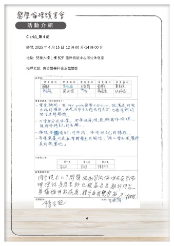 Clerk1_第 4 組 時間: 2025 年 4 月 15 日 12 時 00 分-14 時 00 分 地點: 兒童大樓 L 棟 B2F 臨床技能中心考生休息室 指導老師: 急診醫學科張玉喆醫師 4