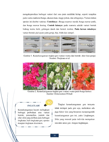 pada warna mahkota bunga, ukuran daun, tinggi pohon, dan sebagainya. Variasi dalam