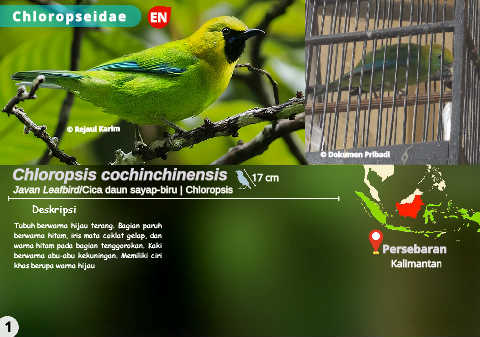 Chloropseidae EN © Rejaul Karim © Dokumen Pribadi Chloropsis cochinchinensis 17 cm Javan Leafbird/Cica daun sayap-biru | Chloropsis Persebaran Kalimantan 1