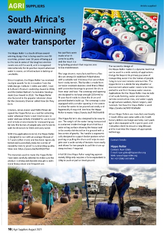 ment Goal Award in 2018. The Hippo Roller are designed to be large enough (135mm) to small-scale farming, water provisions for