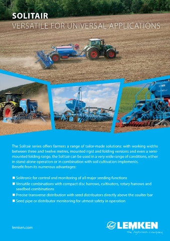 The Solitair series o ers farmers a range of tailor-made solutions: with working widths