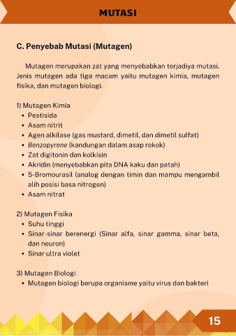 Jenis mutagen ada tiga macam yaitu mutagen kimia, mutagen