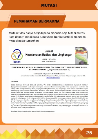 MUTASI PEMAHAMAN BERMAKNA Mutasi tidak hanya terjadi pada manusia saja tetapi mutasi juga dapat terjadi pada tumbuhan. Berikut artikel mengenai mutasi pada tumbuhan. 25 1