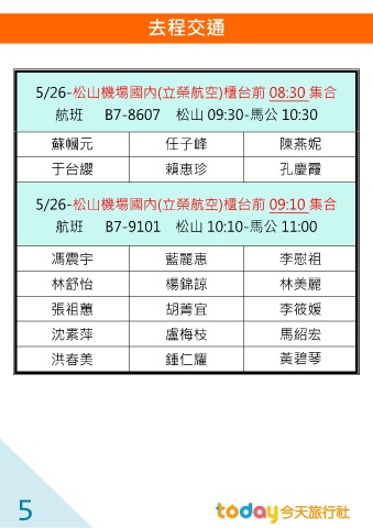 去程交通 5/26-松山機場國內(立榮航空)櫃台前 任子峰 賴惠珍 5/26-松山機場國內(立榮航空)櫃台前 藍麗惠 楊錦諒 胡菁宜 盧梅枝 鍾仁耀