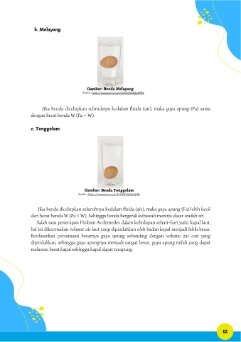 dari berat benda W (Fa < W). Sehingga benda bergerak kebawah menuju dasar wadah air.