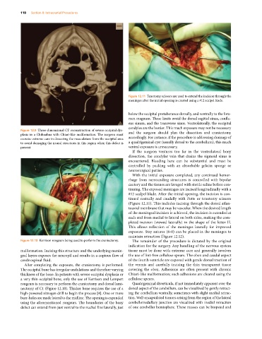 nectomy of C1 (Figure 12.10). Thicker bone requires the use of a dorsal aspect of the cerebellum, can be visualized by gently retract-